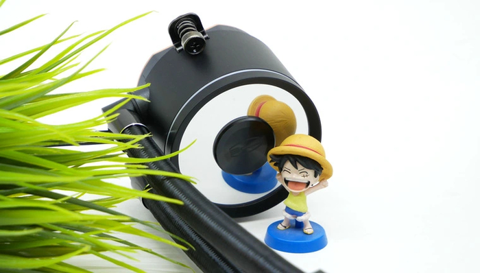 Производитель прибегнул к стандартной и популярной форме помпы-водоблока в виде шайбы, а для красивого дизайна использовал зеркальную поверхность с логотипом бренда. Размеры — 84 х 70 х 57 мм.