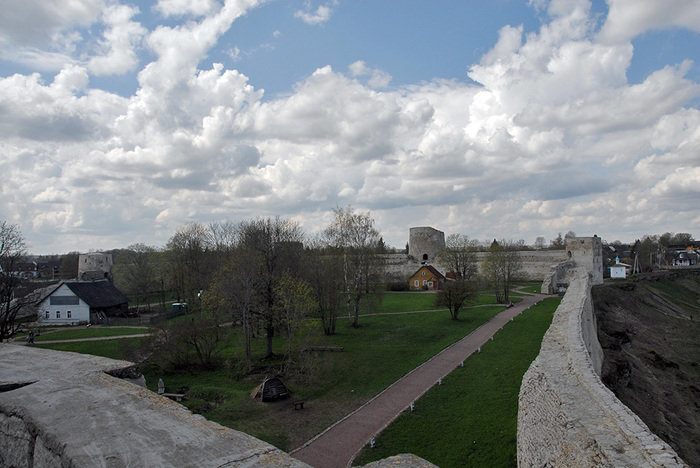 Собственно вид с башни на внутренности крепости. Высота на картинке не ощущается, но она есть и еще какая.