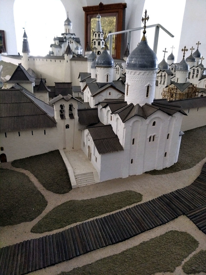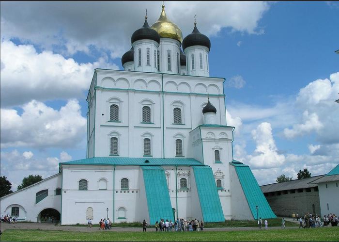 Внутри крепости классический псковский собор 14 века (хотя, конечно, с тех пор во многом перестроенный). Рядом с крепостью есть еще три церкви - каждая по-своему интересная.