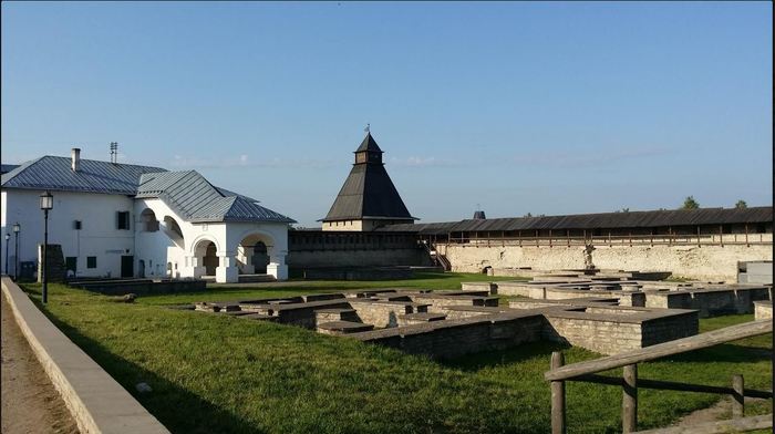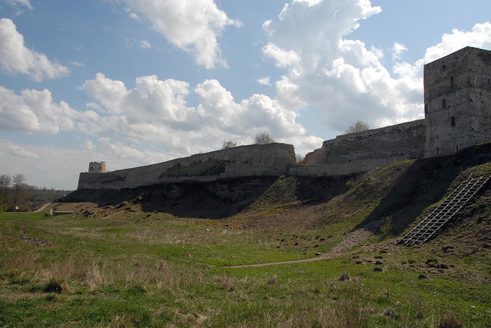Современная крепость была построена в середине 14 века на Жеравьей горе над Городищенским озером. Крепость была абсолютно неприступной. Как правило, враги либо застревали под Изборском, либо шли дальше на Псков, оставляя непокоренный Изборск в тылу. Другое дело, что Изборск не всегда охотно рвался помогать Пскову. Соседи, что уж там. Если не ошибаюсь, враги захватывали Изборск пару раз и то только в результате предательства внутри крепости.