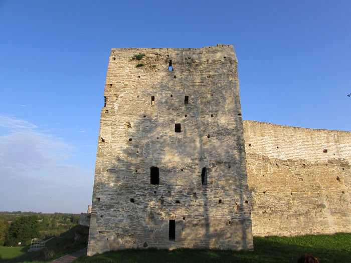 Когда археологи еще в советские времена разбирали одну из стен - нашли замурованного человека. То ли казнили так кого изборяне, то ли забыли прост...