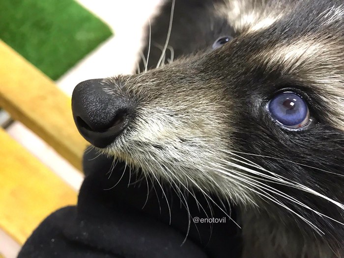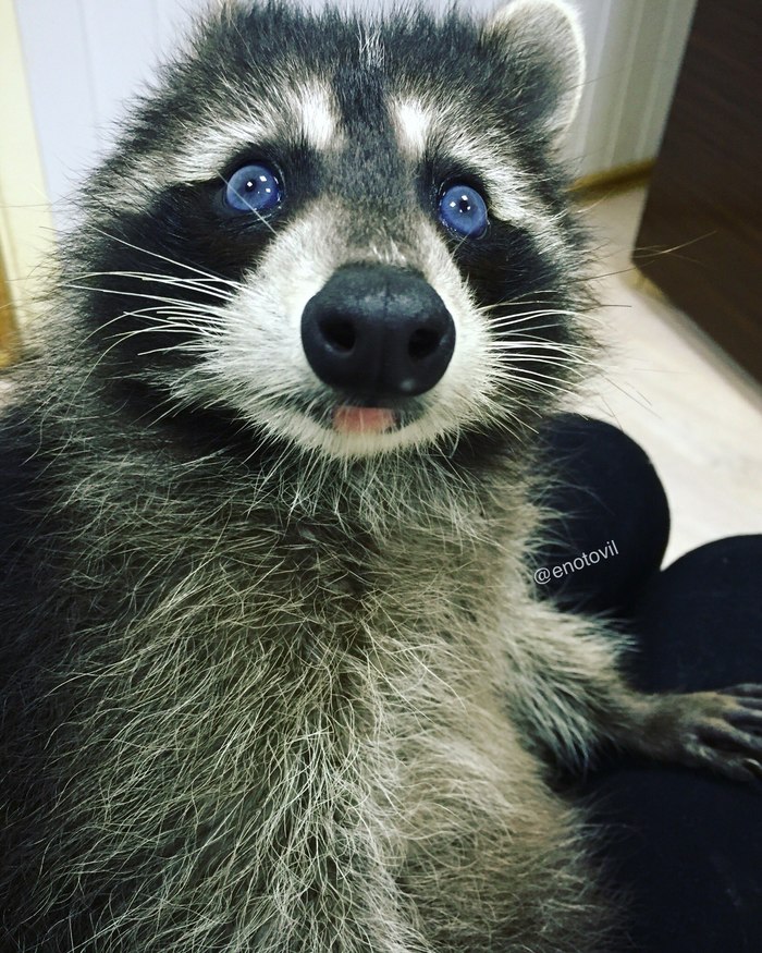 - Это редкое явление? Естественно, еноты с голубыми глазами появляются очень редко, так как это определённого рода мутация. На данный момент известно лишь о нескольких голубоглазых енотах: Крошка из Енотовиля в Санкт-Петербурге, папа Крошки - Семен из Краснодара, вторая дочь Семы - Кнопка. Голубоглазый енот такая же редкость, как, например, енот альбинос.