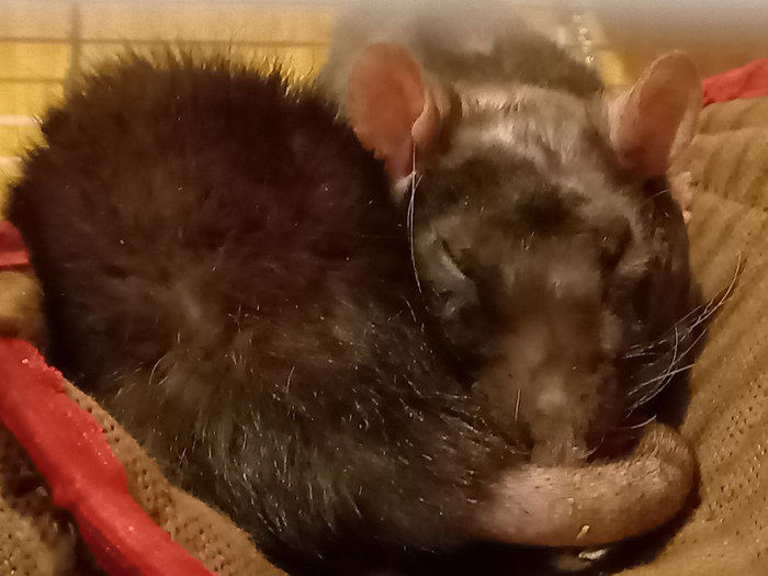 Вчера ушёл на радугу Беляшик, самый трусливый, самый нечистоплотный и самый ленивый крыс на свете. Никогда не любил человеческие руки, прикосновения и людей в целом. Очень сильно обожал пожрать вкусно и поспать долго и сладко. И чтоб никто и близко не подходил. Оставил после себя гору заныканных каках, зассанный диван и мега много изгрызанного постельного белья, коробок и одежды. Любимый Беляш...