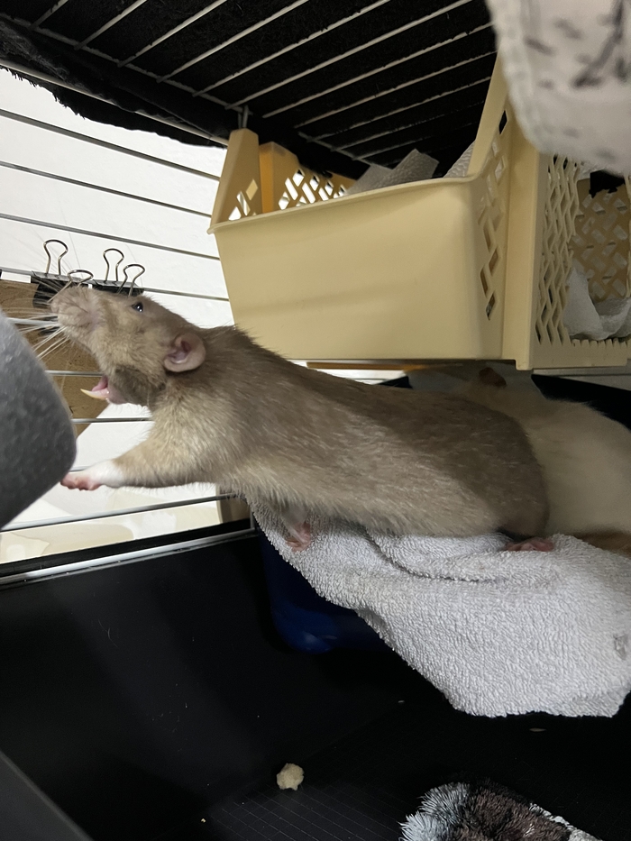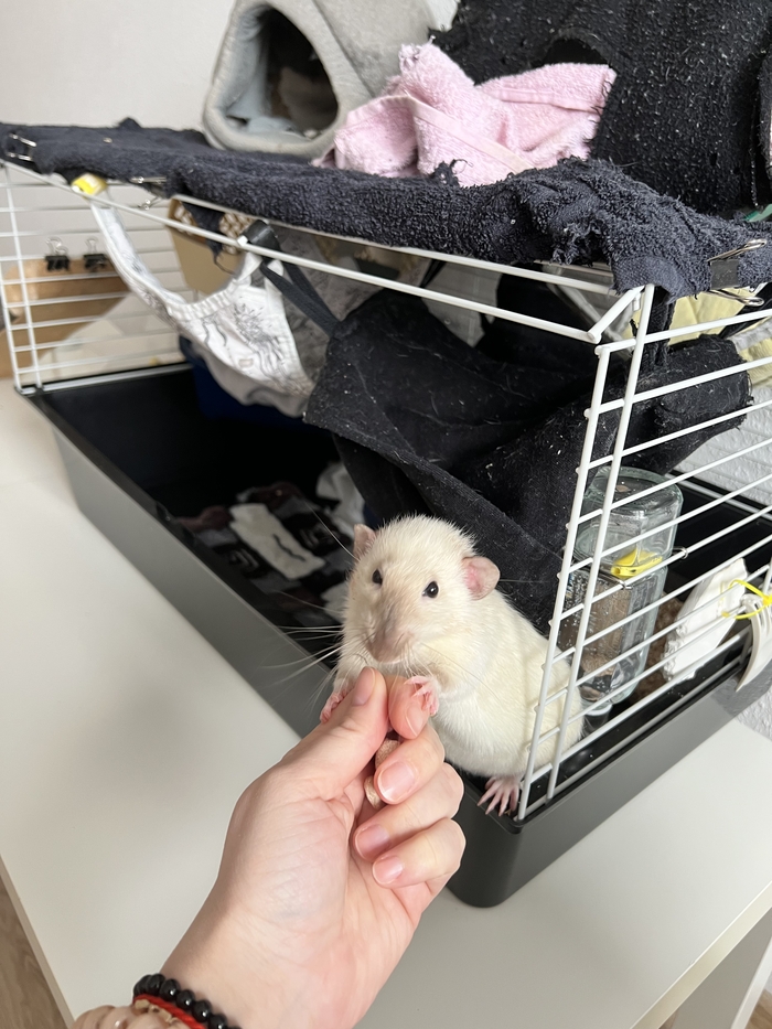 Я купила Мике новую клетку, просторнее, чем была, но сожителя так и не купила. Я считаю, что уже поздно что-либо предпринимать , ведь ей уже 1,5 года. Да и в принципе мне бы уже все равно не дали завести вторую крысу. Правда у меня есть догадки, что у крыски сопельки, она начала странно сопеть, будто плачет. Может быть, попрошу папу отвезти её к врачу. Буду рада, если кто-нибудь посоветует каких-нибудь врачей для крыс в Московском районе Ховрино !! :)