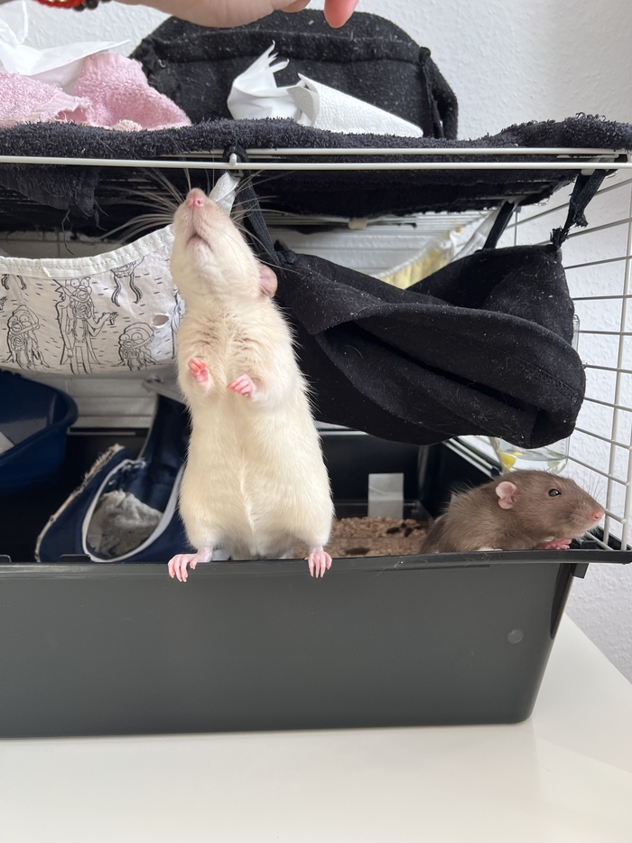 Здравствуйте! Имеются проблемы с одной из крыс: постоянно чешется, начали выпадать усы, при этом она кушает/пьет/бегает как и всегда. У второй крысы такого нет, чувствует она себя прекрасно. Что это может быть? Может кто-то что-то подсказать?