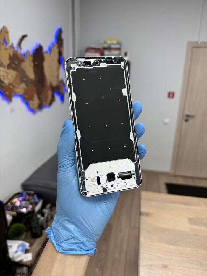 Далее нам нужно исправить замятие корпуса, иначе дисплей с целым стеклом у нас не поместится в раму.