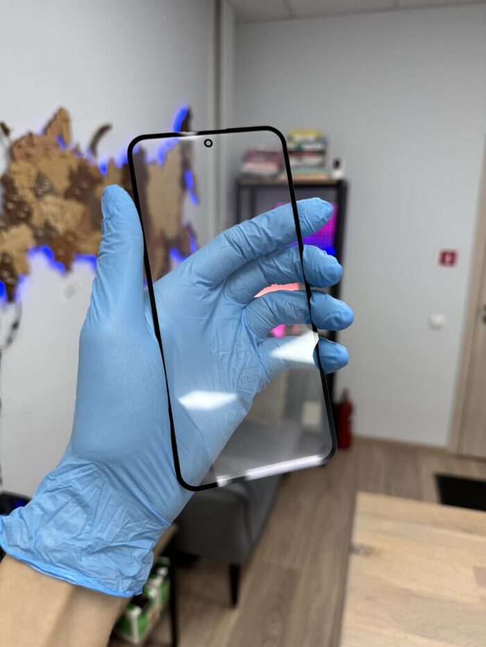 Удаляем все пылинки в антипылевой комнате и склеиваем матрицу с новым стеклом на оптически прозрачный ультрафиолетовый гель.