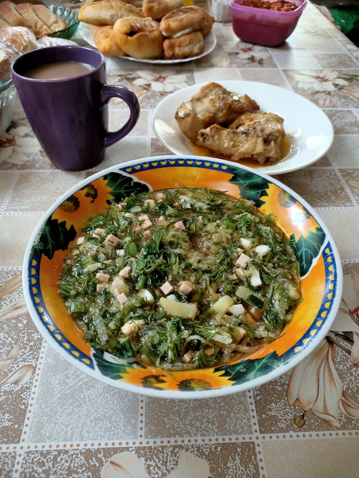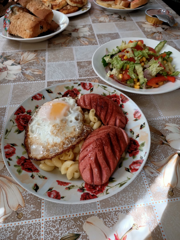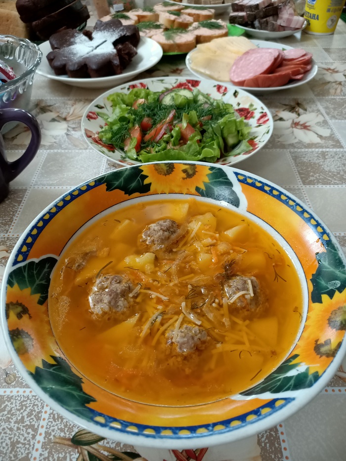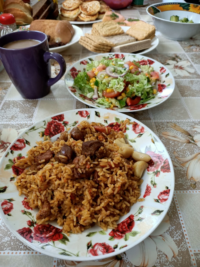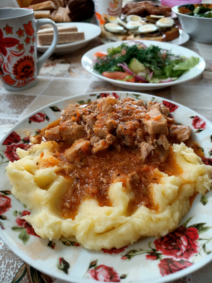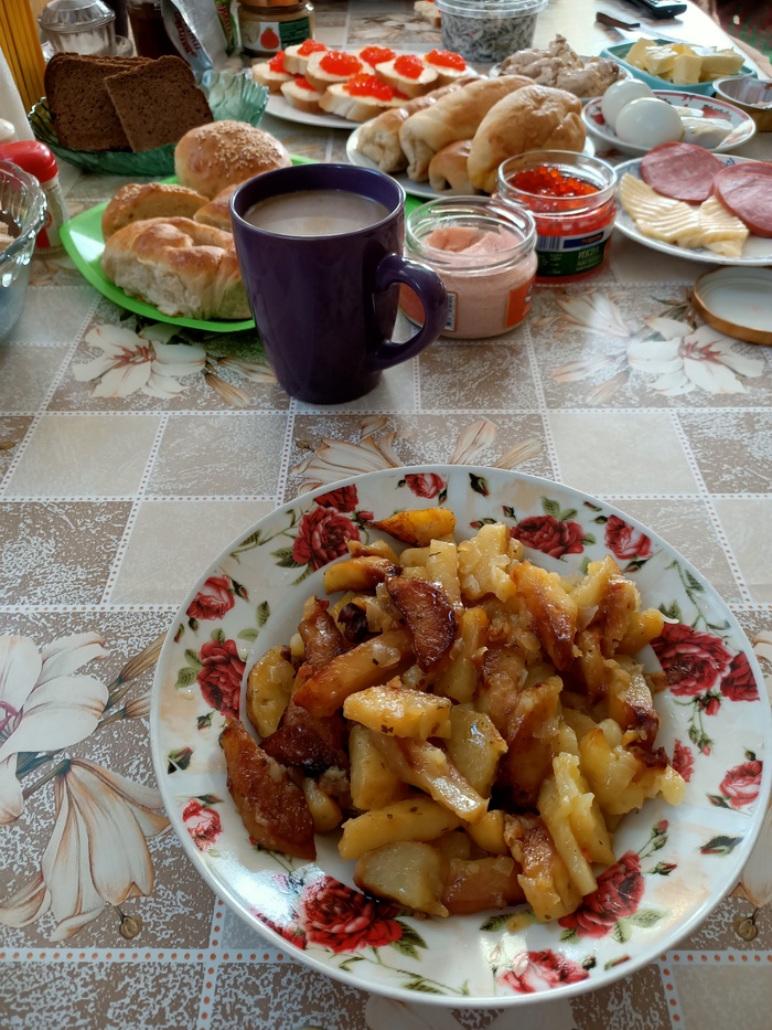 Теперь отдельно о том что же я за обед команды там такой снимал и про штурмана которому шлю особые благодарности. Ещё когда началась настоящая навигация и работа перешла на вахтовый режим и повар начала готовить полноценные завтраки, обеды и ужины, я очень удивлялся как же восхитительно тут кормят, какая красивая сервировка тут и какие разнообразные блюда, повару честь и хвала на самом деле, она вообще молодец. Я рассказывал жене про это, а она сказала "лучше покажи чем сто раз расскажи", поэтому я стал фотать и отправлять ей то что сегодня скушал.