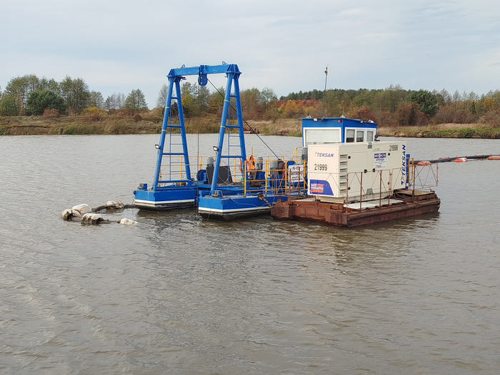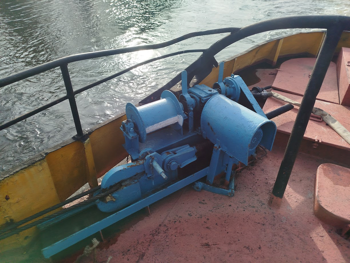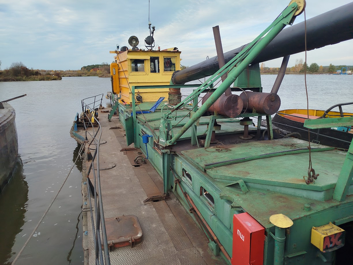 Эта лодка видела всякое дерьмо. Используется для очистки хоботка земснаряда, когда он насосет всяких камышей и веток.
