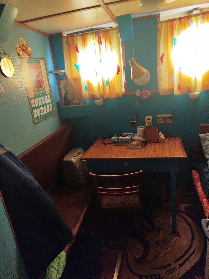 Рубка изнутри. Все просто. Штурвал, бинокль, мафон, поднять дизель!