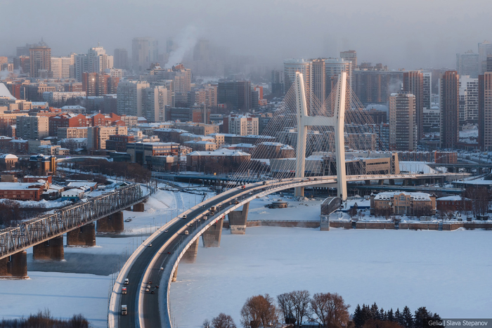 2. Город раскинулся на берегах Оби. Сейчас в городе 7 мостов: 2 железнодорожных, 1 метромост, а теперь ещё и 4 автомобильных. Четвёртый автомобильный мост открыли в 2025 году. Длина моста 1,5 км, в конструкции используется 70 вант, а пилон в виде огромной буквы «Н» высотой 114 метров стал новым узнаваемым силуэтом на панораме Новосибирска.