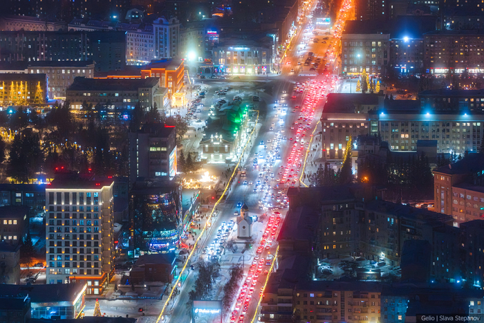 21. Вечерние пробки на Красном проспекте. Новосибирск входит в ТОП-5 городов России по числу пробок.