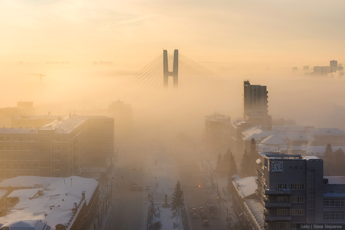 4. Морозный туман от Оби расстилается над городом.