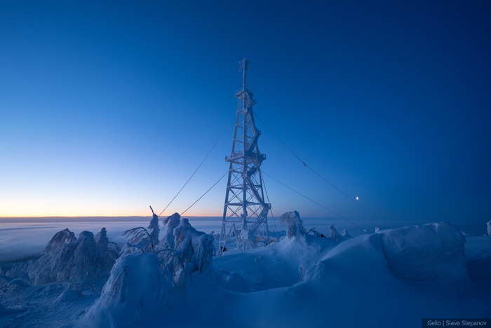 2. На горе стоит вышка телевизионного ретранслятора, передающая сигнал на Красновишерский и Чердынский районы. Рядом находится небольшое здание метеостанции.