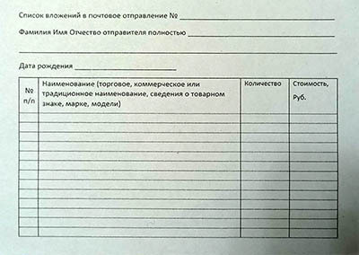 Из нашей области обязательным стало делать опись того, что ты отсылаешь. Эта бумажка прикладывается к посылке - для таможни. Напротив поля "наименование" – поле «цена».