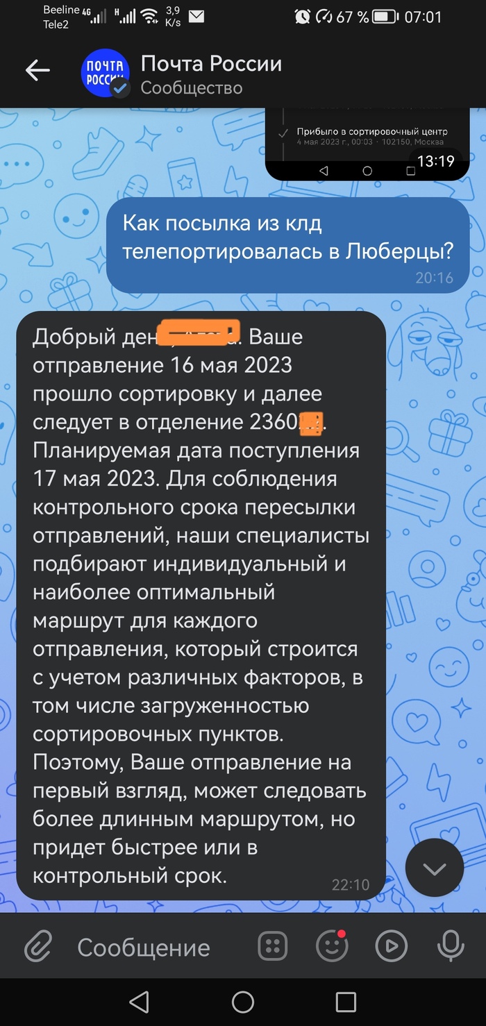 Был сделан заказ на авито с доставкой Почтой России. Срок доставки с 10.05 вдруг стал 17.05. Посылка 6 мая приходит в сортировочный центр Калининград (отправка Люберцы), а уже 16 мая она уже опять в Люберцах. Никаких промежуточных перемещений при этом нет. Комментарии Почта Росии просто прекрасны. Может на просторах пикабу есть сотрудники почты и они объяснят как получается такой телепорт посылок с доставкой в Калининград?