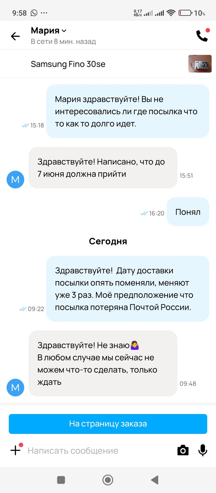 И тут в своем профиле Авито на телефоне я вижу уведомление от Авито о закрытии заказа "поздравлением с покупкой" и всего хорошего! На мой вопрос сотруднику Почты - почему сделка закрыта как покупка, был дан ответ, что сотрудник ошибочно нажал на рабочем ПК не на ту кнопку.