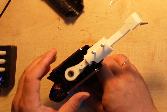 И вот этот самый шарик на конце делает не только возвратно-поступательные движения, но еще и горизонтальные. Для массажа и киноиндустрии это наверное хорошо, а вот для шабера плохо. Пластина шабера должна выполнять только возвратно-поступательные движения, иначе пластину будет закусывать (Я протестировал - инфа 100%). Пришлось рисовать и печатать собственный кривошипно - шатунный механизм на 3д принтере.