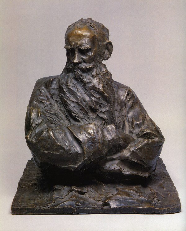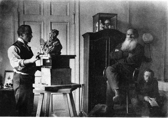 Паоло Трубецкой лепит бюст Льва Николаевича.