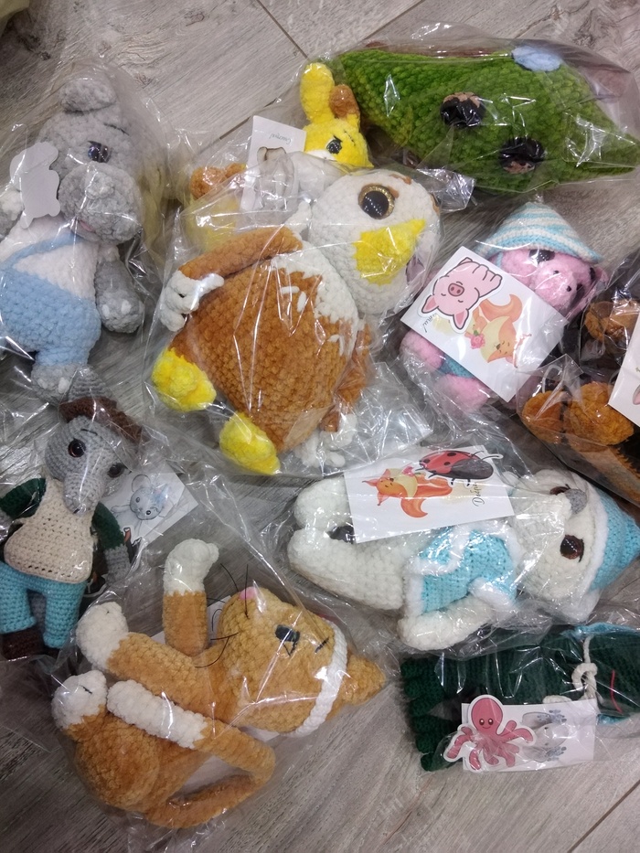 Пикабушница Ольга прислала нам замечательные вязаные игрушки: сову, кота, свинку, таксу, много всего, даже вязаный вертолет! Руки у вас золотые, сердце доброе, спасибо вам за ваш труд!