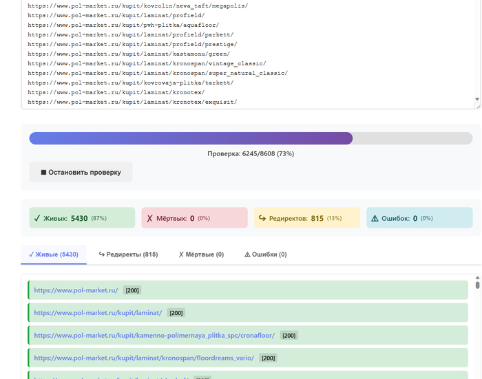 Но вот беда, все они жутко тормозили (возможно из-за проблемы с Cloudflare в России) или у них было ограничение - максимум 500 страниц из карты сайта извлекали, и я не смог получить все страницы сайта. :(