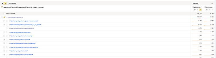 вот статистика по визитам за прошедшую неделю по страницам сайта