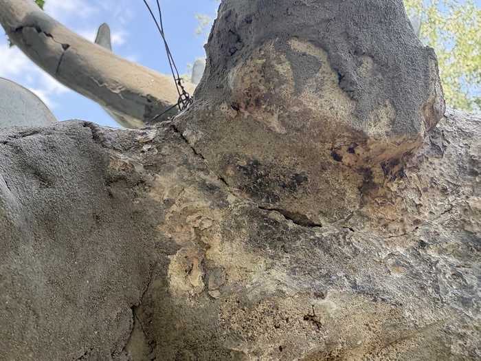 Весной 2025 года, когда я проводил осмотр, скульптура «Лоси» находилась в аварийном состоянии. Уши и рога были утрачены, ноги обоих лосей — в руинированном виде, а некоторые участки поверхности были испещрены трещинами. Произведение было покрыто толстым слоем краски разного происхождения, что значительно затрудняло его восприятие и скрывало оригинальную фактуру.