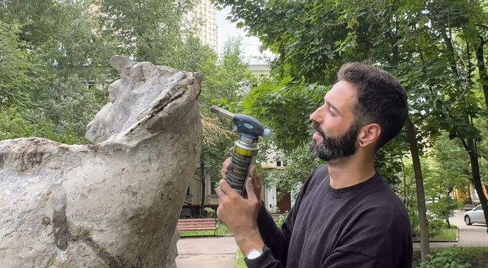 Работы начались в летние месяцы 2025 года. В первую очередь мы приступили к очистке поверхности и созданию утраченных элементов — ушей и рогов — в мастерской. В это же время на месте скульптуры проводилась очистка от загрязнений, чтобы подготовить её к дальнейшим восстановительным мероприятиям.