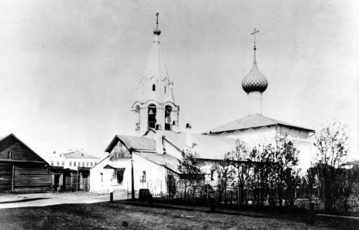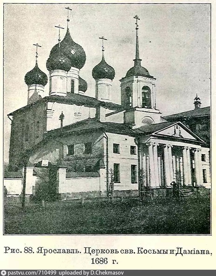 Построена сія церковь тщаніемъ и иждивеніемъ бывшими тогда зовомыми гостьми и купцами Ярославскими жителями, прозваніемъ Дружиною-Акиндиномъ да Гуріемъ Назаровыми дѣтьми, да Гурія Назаровича дѣтьми, гостьми жъ Михаиломъ, Андреемъ и Іованомъ и внучатами Гурьевыми, гостьми же Михаиломъ и Петромъ прозваніемъ Гурьевыми, изъ собственнаго ихъ кочту и имѣнія, въ 1645 году, а кѣмъ освящена, извѣстія нѣтъ.