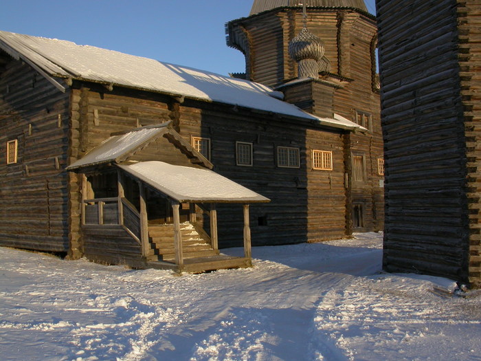 Тогда для меня не было ещё деталей и архитектуры после Петра, т.е. я ограничил себя небольшим, но самым интересным пластом наследия. Это не подробный обзор Каргополя и Каргополья - это путевые ощущения, первая краеведческая поездка человека, только что открывшего для себя Средневековую Русь. Иначе говоря, как я стал краеведом, что повлекло меня в провинцию, что подняло с насиженных мест, что изменило жизнь. А за подробным обзором достопримечательностей - вам сюда. Тут и детали Благовещенской и Богородицерождественской церквей, которыми восхищались Суслов, Грабарь, Некрасов и другие; тут и рядовая застройка Каргополя - Каргополь уездный, если желаете.