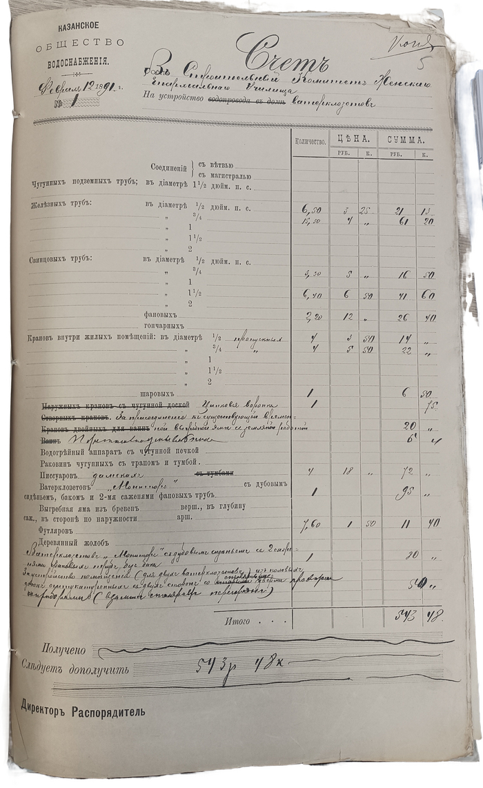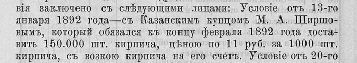 "Наблюденіе за технической стороной строительпыхъ работа принялъ на себя епархіальный архитекторъ Ѳ. Н. Малиновскій, составлявшій и планъ на надстройку 3-го этажа. Впослѣдствіи сумма подряда увеличена была, вслѣдствіе дополнительныхъ строительныхъ и ремонтныхъ работа, до 36,669 р. 43 коп., не считая вознагражденія архитектору за составленіе плана и наблюдеяіе 600 р. Первоначальная стоимость одного училищнаго корпуса безъ службъ равнялась 81030 р. 82 коп., а со службами и со всѣми побочными расходами по вводѣ во владѣніе, вмѣстѣ съ принятіемъ долга Нижегородско- Самарскому земельному банку — 120094 р. 84 коп. Въ настоящее время стоимость главнаго корпуса возросла до 118300 р. 25 коп., а всего израсходовано по настоящее время на всѣ училищныя зданія 157364 р. 27 коп.