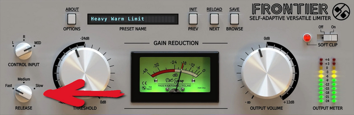 Ещё одним важным параметром является настройка релиза. Это тот же релиз что и у компрессора. Он выполняет ту же функцию, подробнее можете посмотреть в видео о компрессорах. Единственная разница: в лимитерах он часто работает автоматически с безразмерной регулировкой по принципу в одну сторону медленно, в другую быстро: