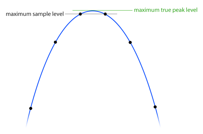 Во первых это пиковое значение, то есть измерение высочайшего уровня. Он учитывает также величину не только семплов, но и значения которые принимает звуковая волна между семплами: