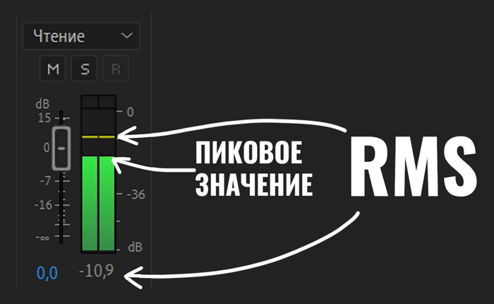 Второй вариант измерения: RMS (среднеквадратическое), он уже измеряет величину растянутую во времени, позволяя учесть длительность. Именно эту величину вы видите на индикаторах рядом с фейдерами: