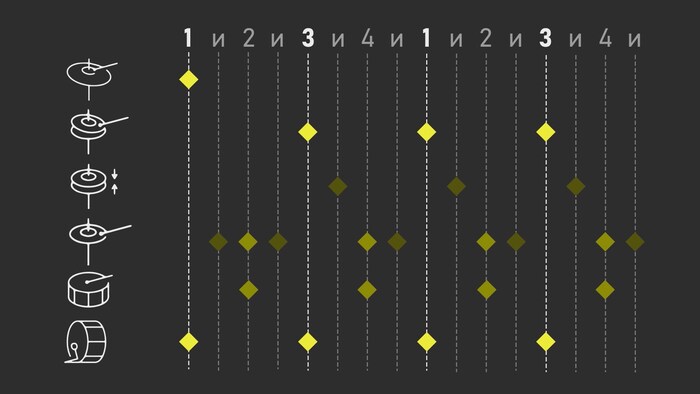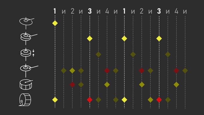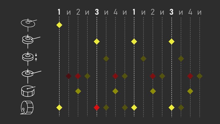 Стоит понимать что кратковременный удар барабана и звучание целого аккорда с некоторой длительностью, будет обладать разной громкостью. С точки зрения человеческого слуха, аккорд будет звучать громче.