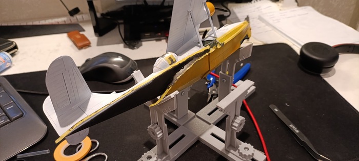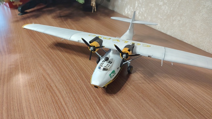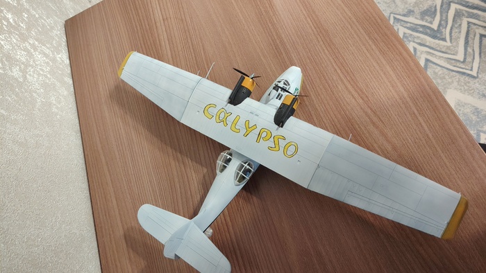 В комментариях прошлого поста попросили показать всю коллекцию.Проблема в том, что мои модели - как питомцы, разъехались по разным "вольерам" (квартирам родственников и друзей). Полного парада не получится, но могу потихоньку показывать самых интересных обитателей по отдельности. Вот, например, один из любимых проектов - летающая лодка-легенда летающая Калипсо Кусто.
