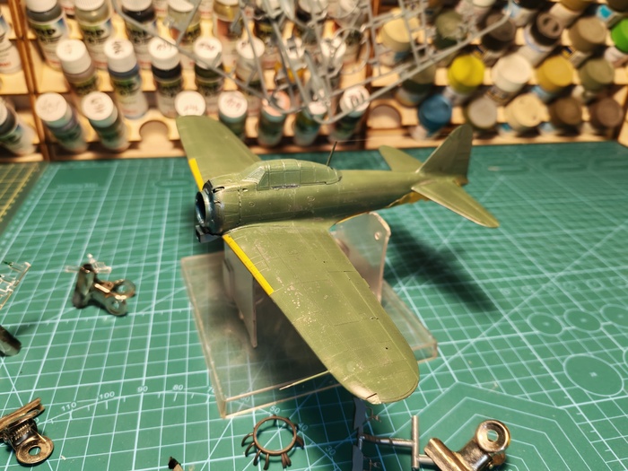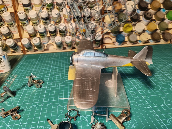 после нанесения грунта нанес серебрянку так как предполагалась использовать метод сколов с использованием лака для волос . Не очень часто использую , но приходится для японской авиации