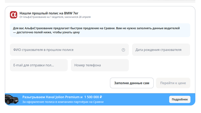 Если на одном популярном сайте произвести расчет ОСАГО, указав номер данного автомобиля - выйдет следующее окно.