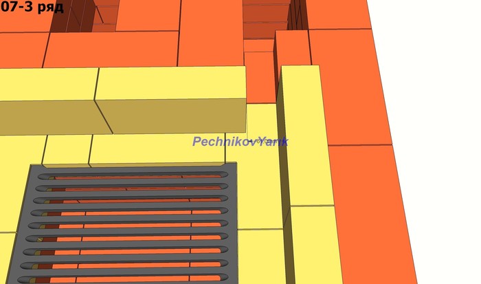 Выкладываем шамотный кирпич и врезаем колосник. Между шамотным и красным кирпичом кладем лист базальтового картона 10мм, или 2 листа по 5мм внахлест.