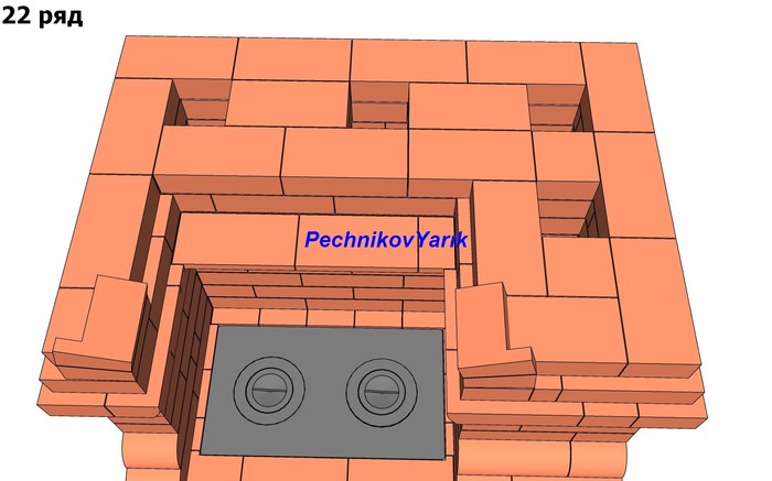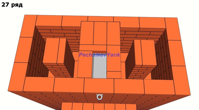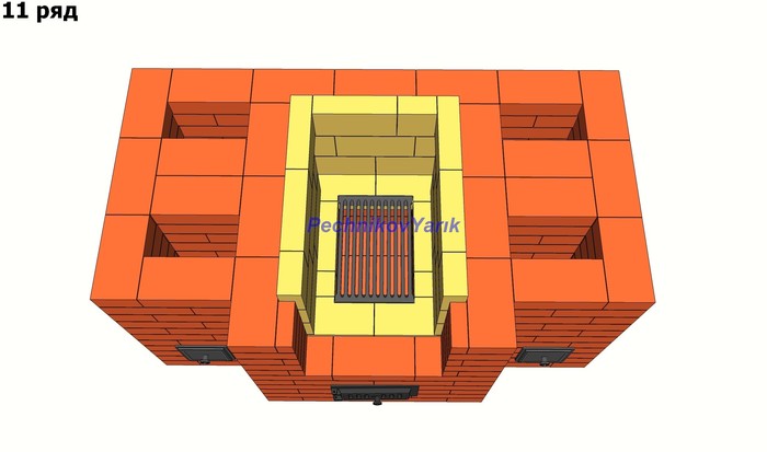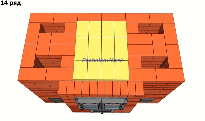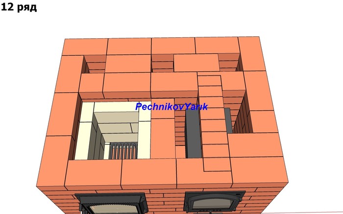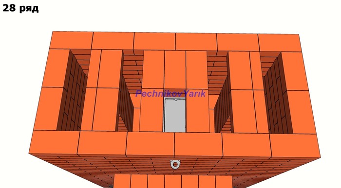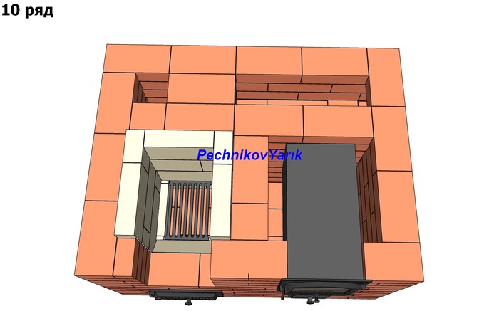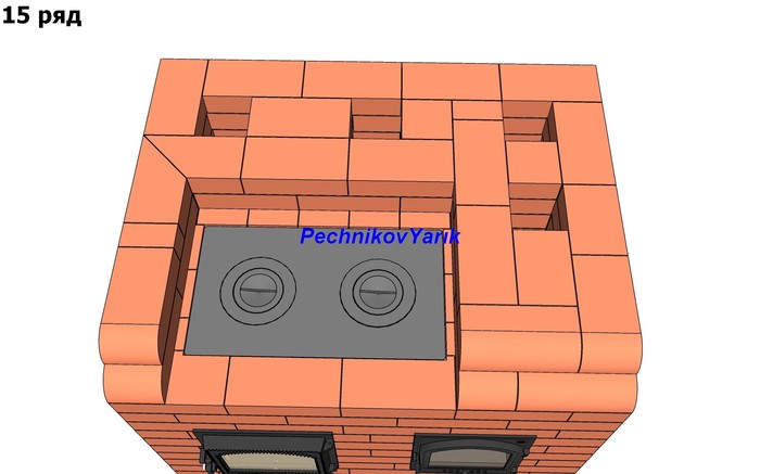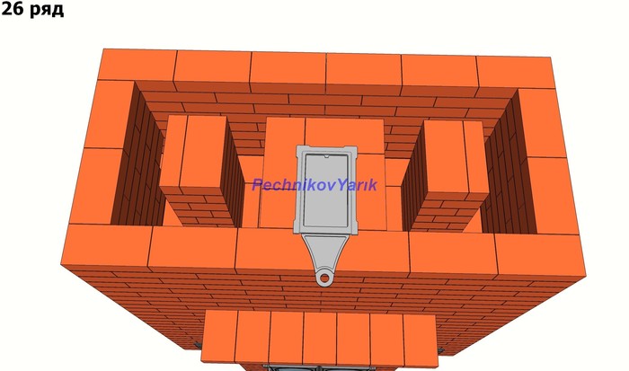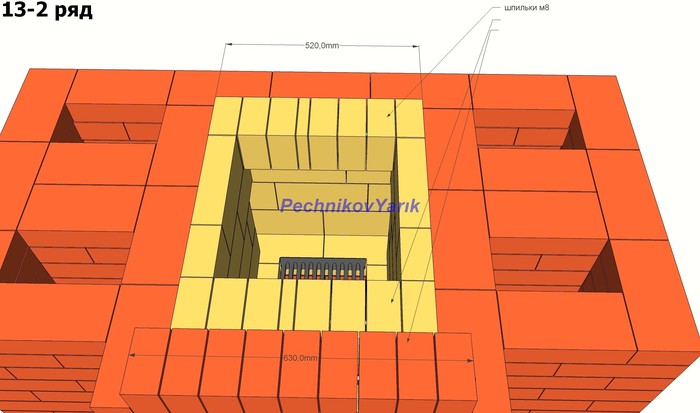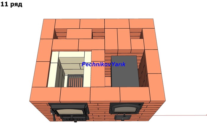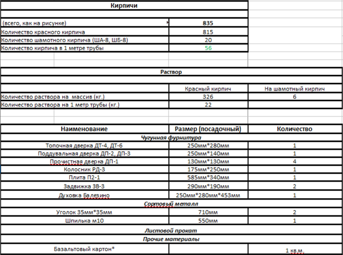 Без учета трубы на эту печь потребуется 830 кирпичей. На метр трубы потребуется 56 кирпичей.