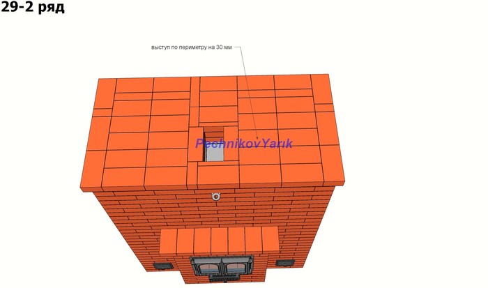 Удобно когда под рукой есть небольшое пространство, на которое можно положить инструменты для готовки. Здесь это пространство занимает небольшая полка над плитой. Так же для красоты делаем по кругу печи выступы по 30мм.