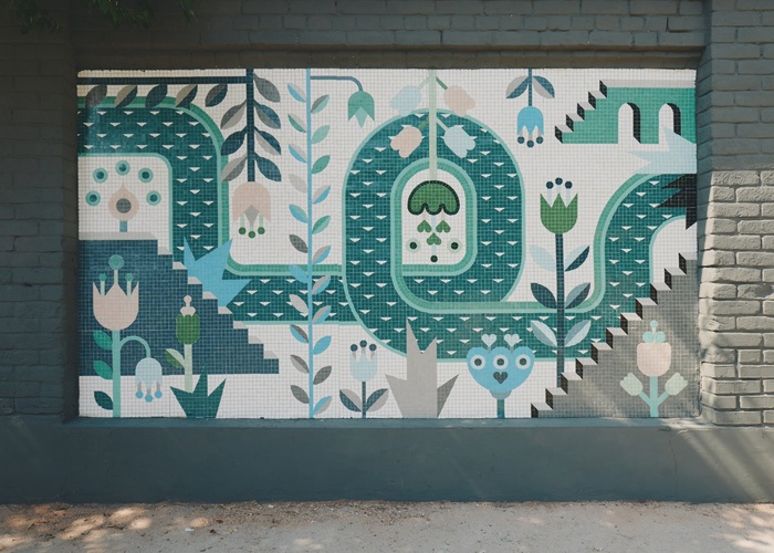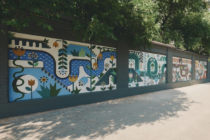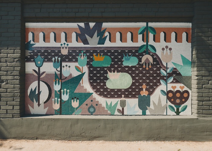 Технология сложная, владеют ей немногие, так что в реализации художнику помог мастер мирового уровня Андрей Казанцев. Несколько недель работы – и на набережной Туры возле «Конторы» появился «Восход над горой». Темный фон горы – это отсылка к тюменским традиционным коврам, где пышно цветут розы на черной земле.