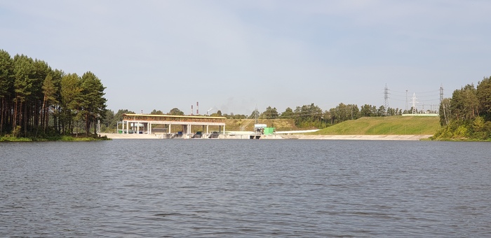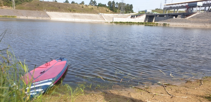 За водосбросом течение уже приличное. И грести достаточно легко. Однако идти можно только по фарватеру - берега просто облеплены рыбаками с донками, бросающими удивленные взгляды - очевидно, не часто такие плавсредства сплавляются за водосбросом.