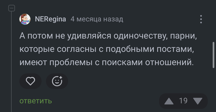 +Администрация сообщества оставляет за собой право скрывать негативные комментарии в которых содержится ярый сексизм (дискриминация людей по половому признаку)