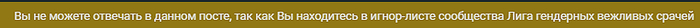 Решил сегодня написать в один из постов, который был размещен в Лиге гендерных вежливых срачей. И с удивлением узнал что я у того в игнор листе О_о.