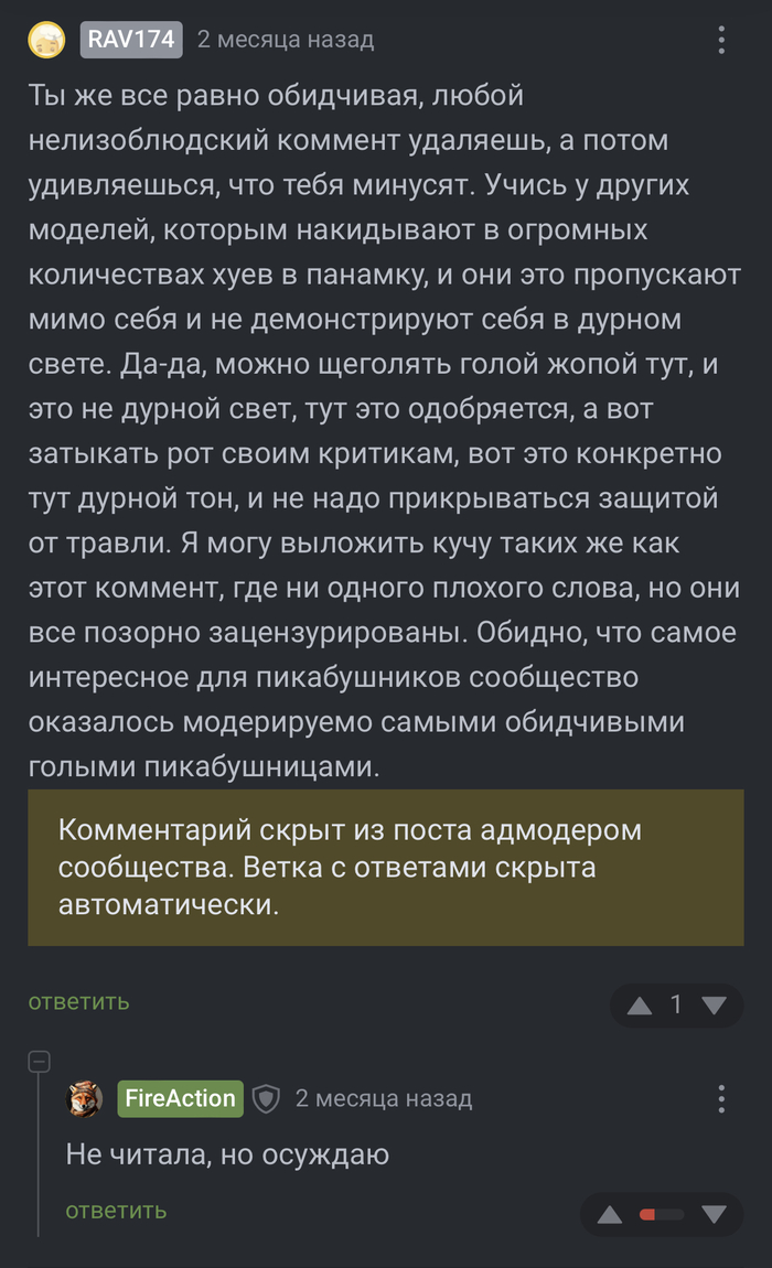Давно не секрет что на пикабу существуют различные сообщества, которые модерируются ... эм... да хрен знает как они модерируются. Уже были неоднократные жалобы на это, но как то плевать. Сегодня меня привлекло не это.