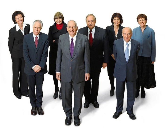 Федеральный совет 2007, Видмер-Шлумпф крайняя слева, Самуэль Шмид четвертый справа.
