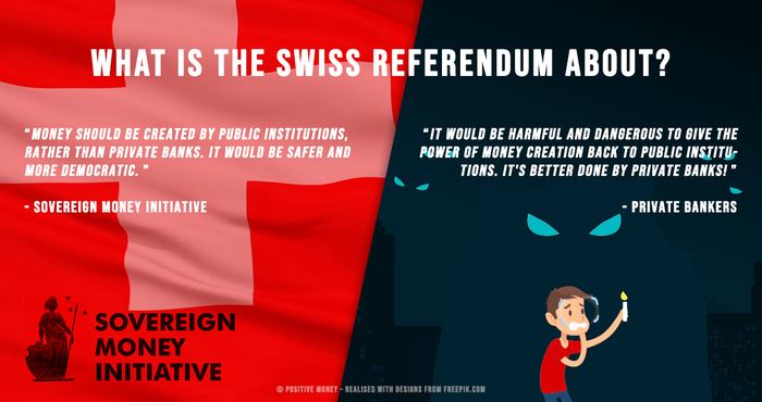 * “За 100%-ное банковское резервирование”. Инициатива, предлагающая, чтобы Национальный банк Швейцарии являлся единственным источником эмиссии, а остальные банки имели достаточно денежных резервов для полного покрытия депозитов. (Сейчас фактически во всех странах коммерческие банки могут производить деньги фактически из воздуха, а хранящихся в них реальных физических денег хватает на покрытие примерно 2% клиентских вкладов. Некоторые экономисты считают это главной причиной циклических кризисов экономики. См. “банковский мультипликатор” и “фиатные деньги” в Гугле. ОК). Инициатива ассоциации “За модернизацию денег”. 24,3% за. Отклонена.