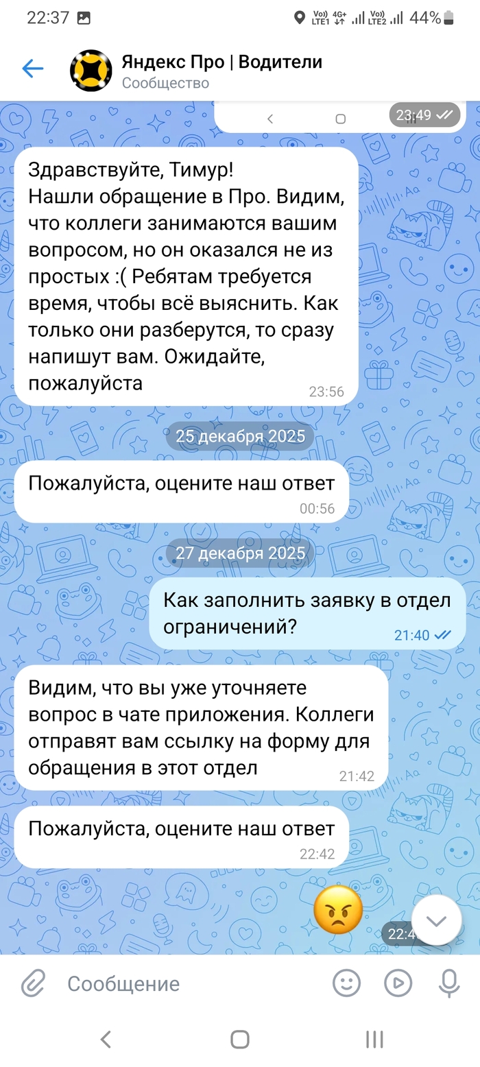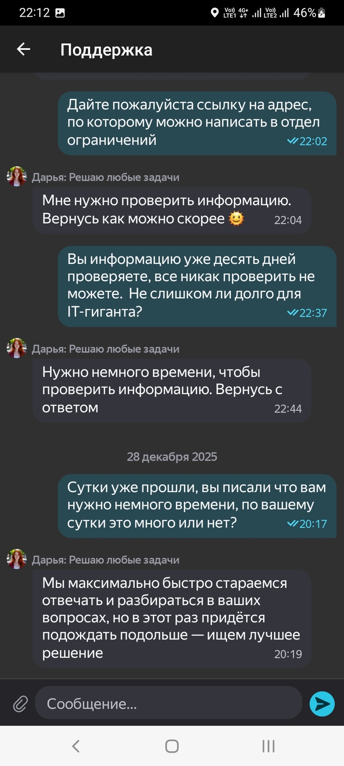 Таким образом прошло десять дней, последний раз я написал в поддержку 28 декабря 2025 года