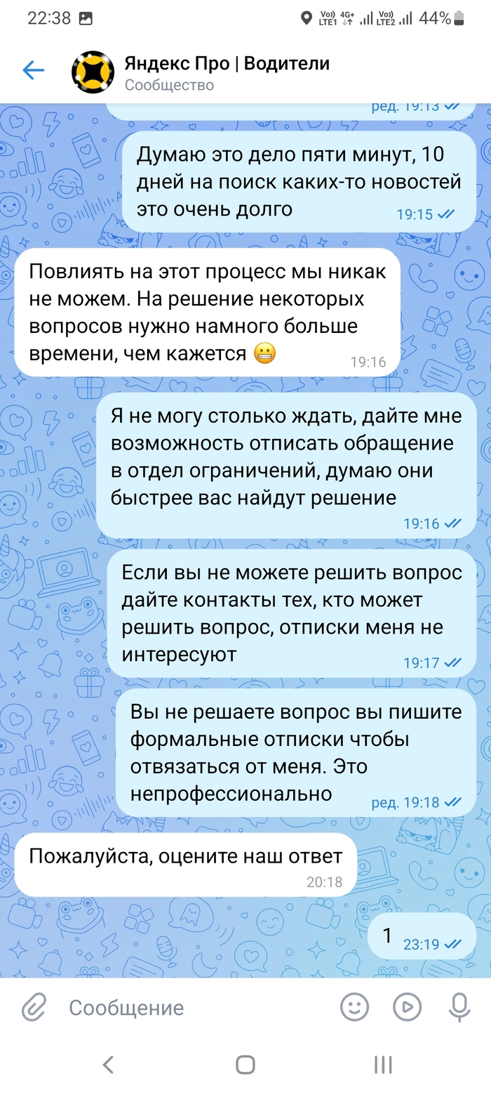 Прошу Яндекс такси в конце концов заняться моей проблемой и разблокировать мне доступ к программе, иначе вас постигнут кары небесные, роспотребнадзор и суд. Ей богу, проблема выеденного яйца не стоит, а вы месяц не можете разобраться.